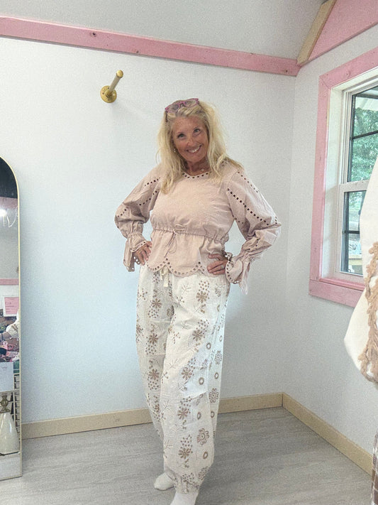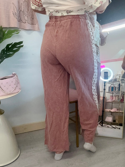 Olive Green Wide Leg Mineral Wash JHer Pants