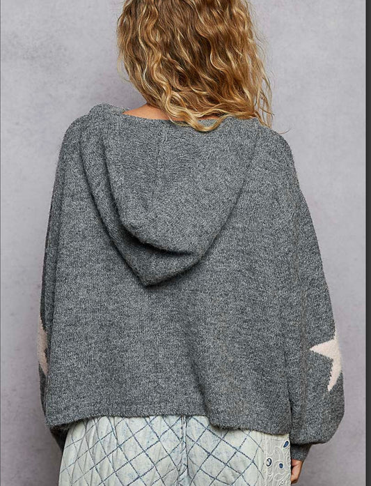 Heather Grey Pink Star Hoodie Pol