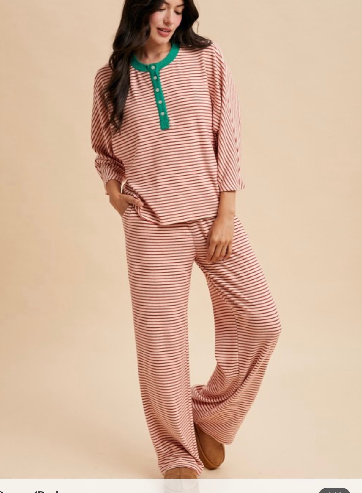 CRHISTMAS STRIPE BRUSHED KNIT PAJAMA SET