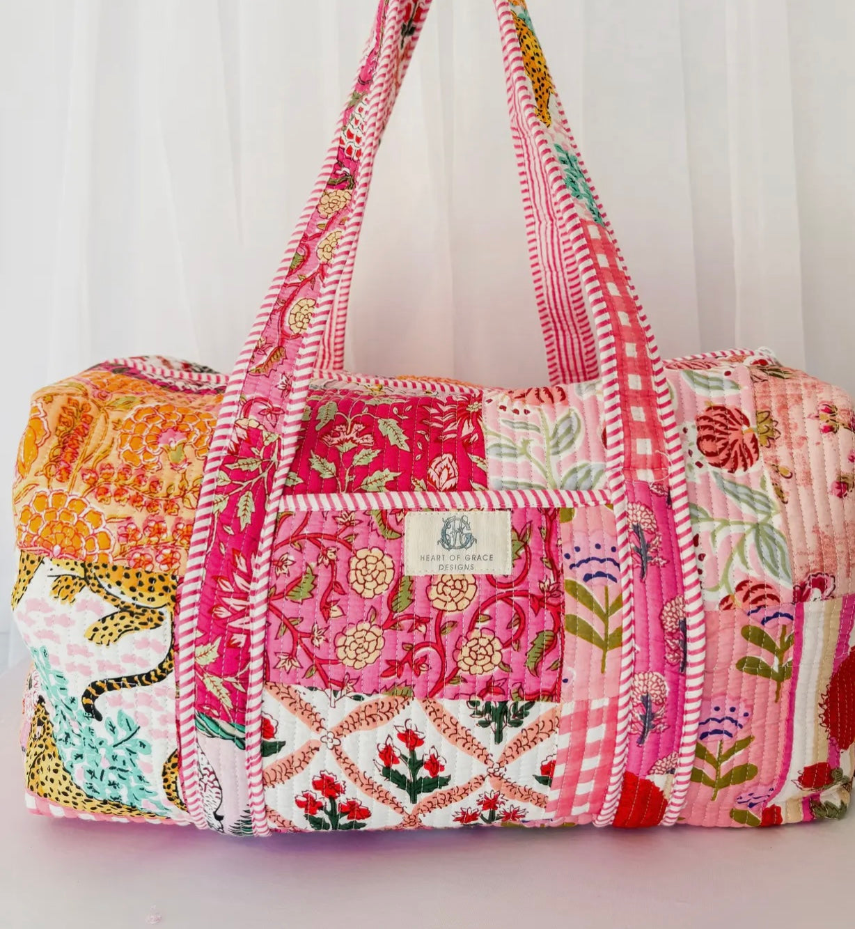 This pink quilted duffle bag is the perfect fashion-forward accessory for any travel weekend. Crafted with high-quality materials, it combines style and functionality with ease. The quilted design adds a touch of sophistication while the spacious interior makes it practical for storing all your essentials. Stay organized and stylish on the go with this must-have duffle bag. Just add a little cuteness to your travel.