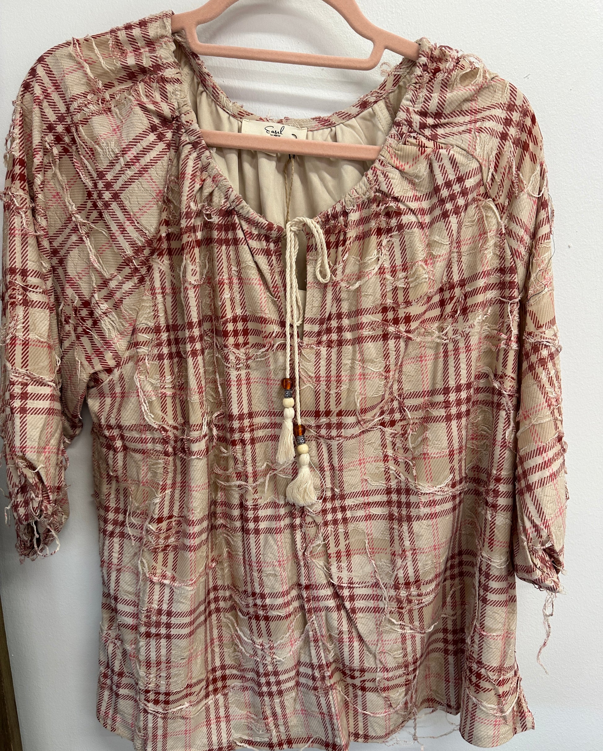 SELF DISTRESSED FLANNEL PLAID WOVEN