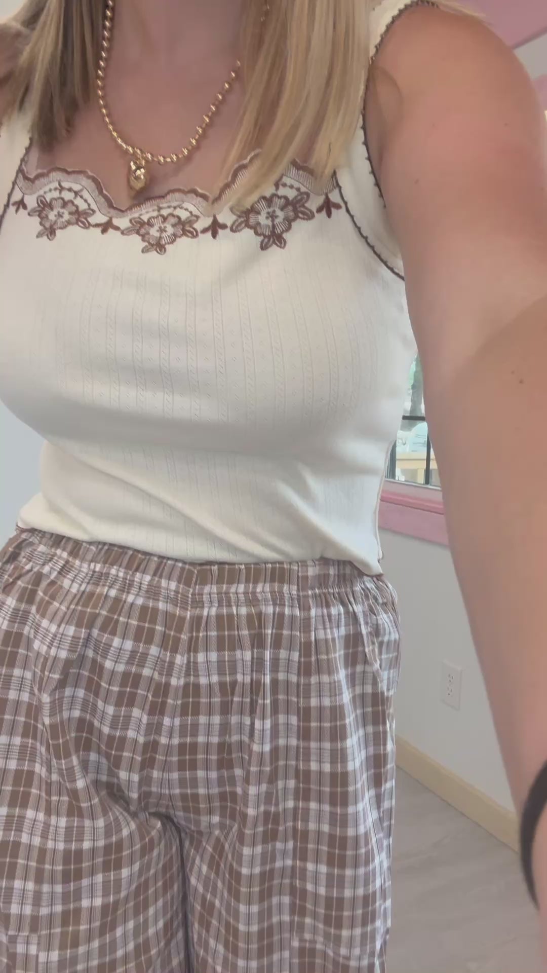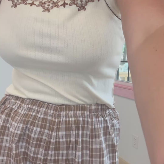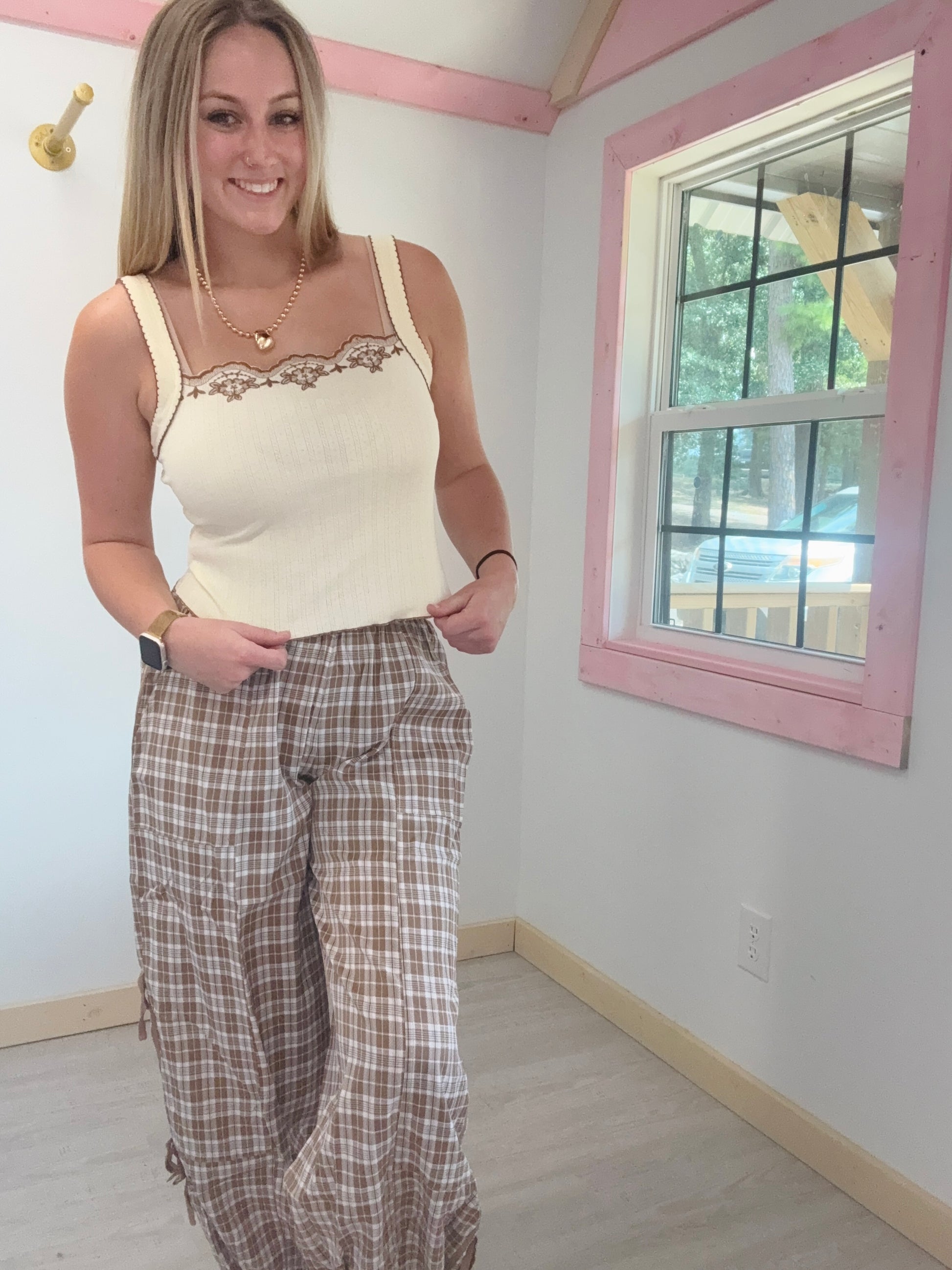 Tan and Brown Scalloped Neck Tank Top Peach Love